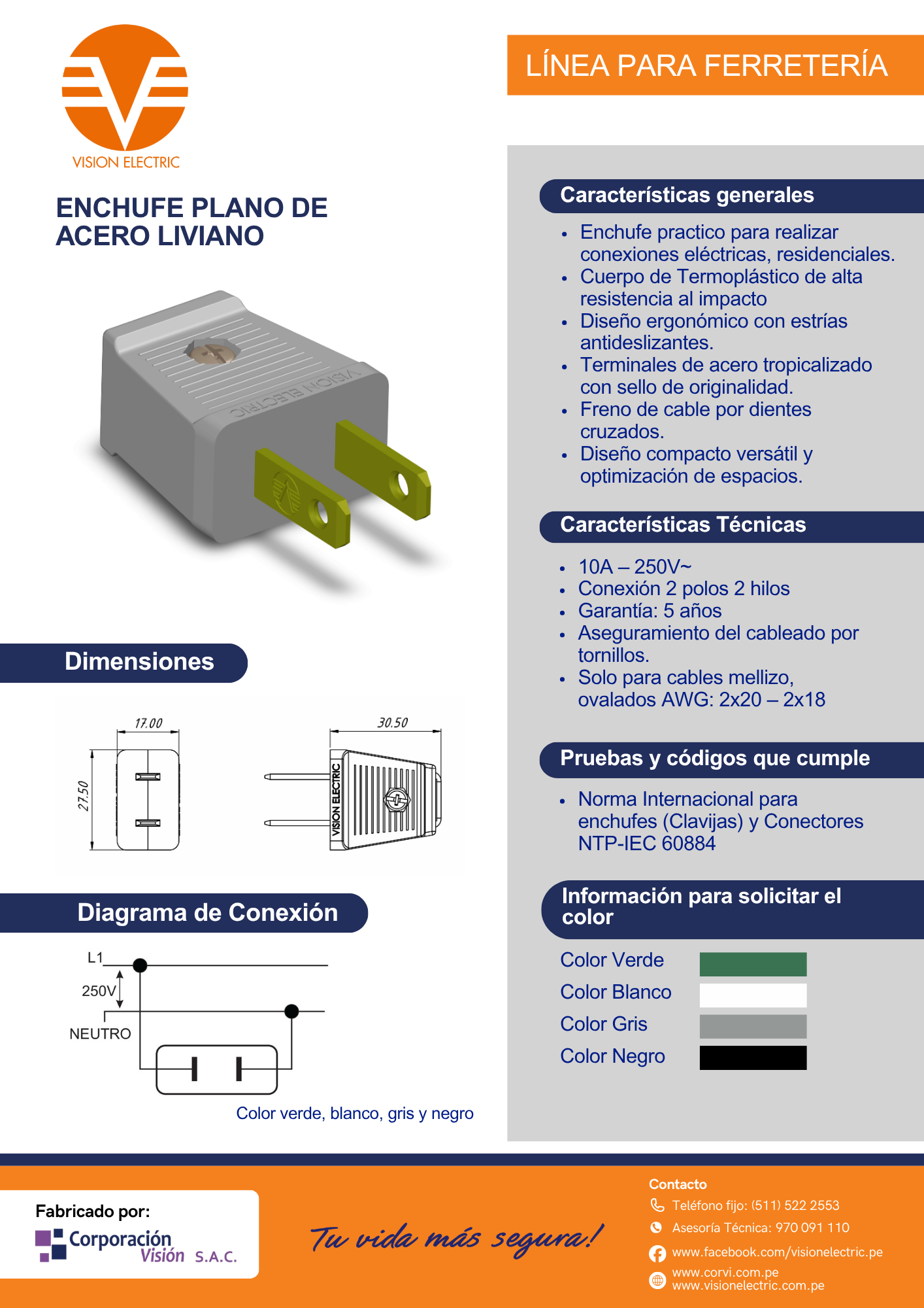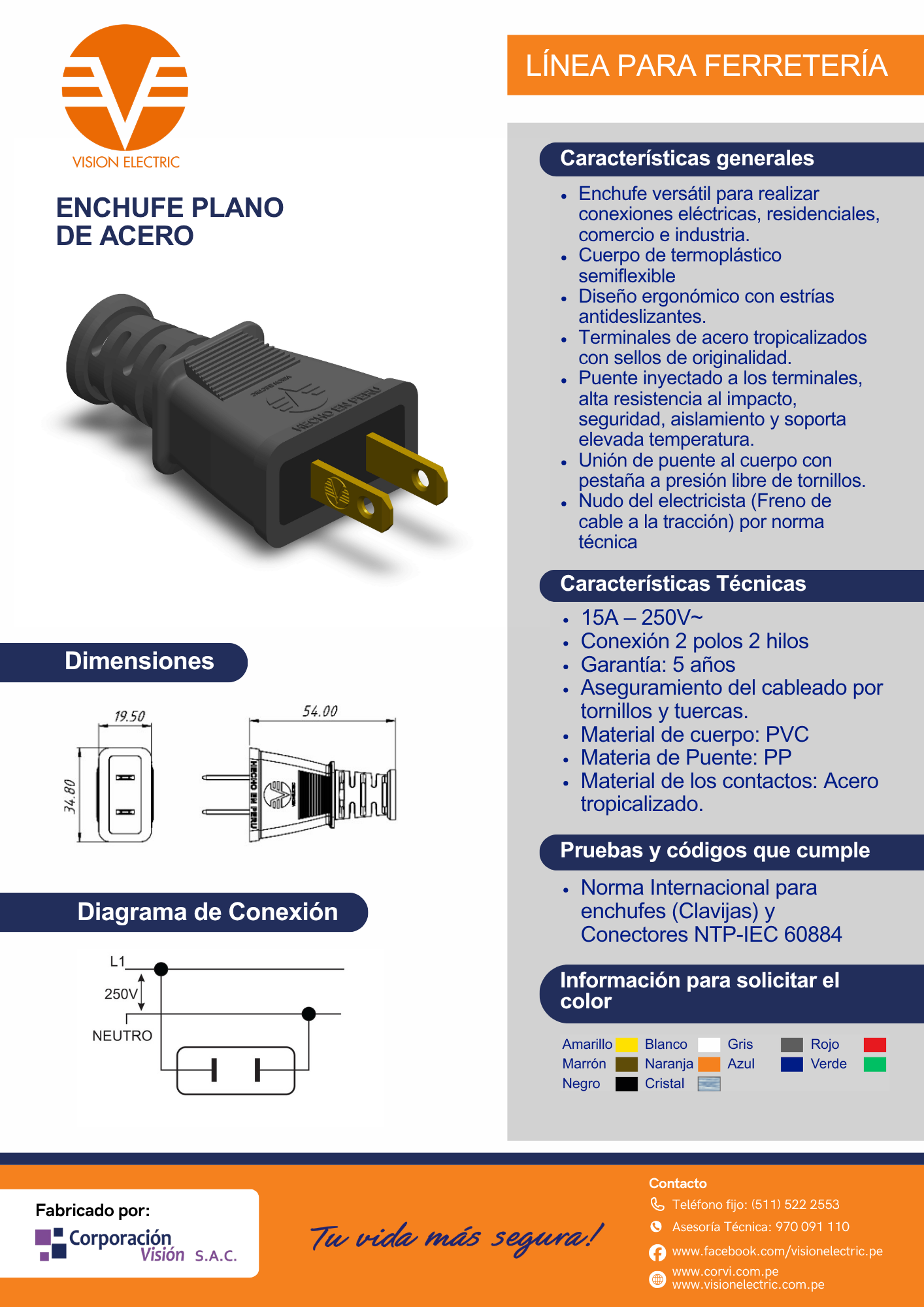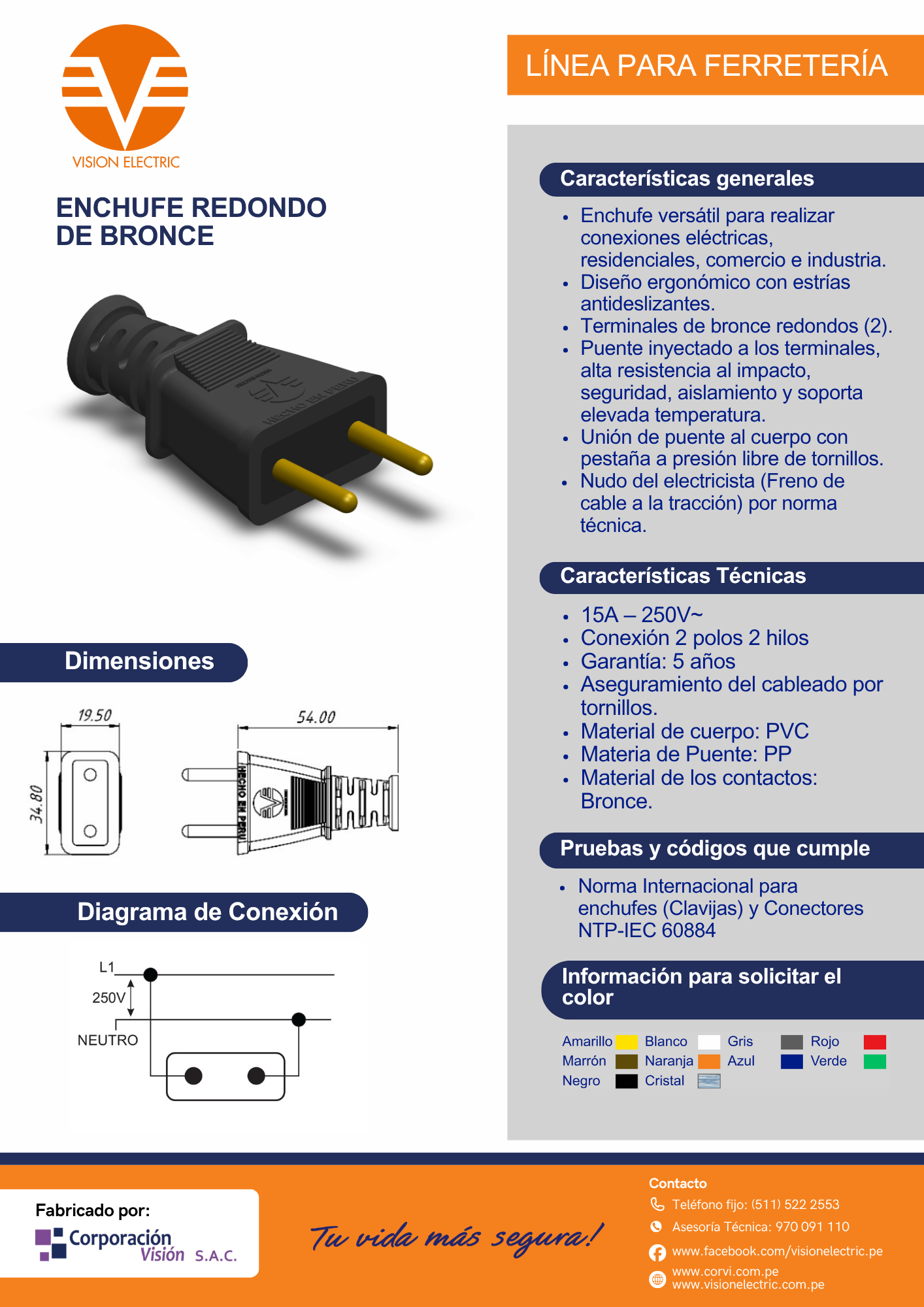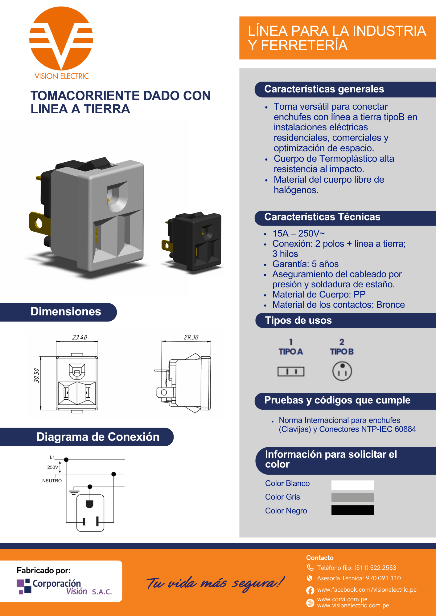 Productos fabricados con material termoplástico libres de metal pesado y halógenos. Además los terminales, tornillos y tuercas de primera calidad certificados según normas técnicas que garantizan su seguridad y su larga vida, preferido y selecto para aplicarlo en el universo de aparatos electrodomésticos semi-Industriales y profesionales.