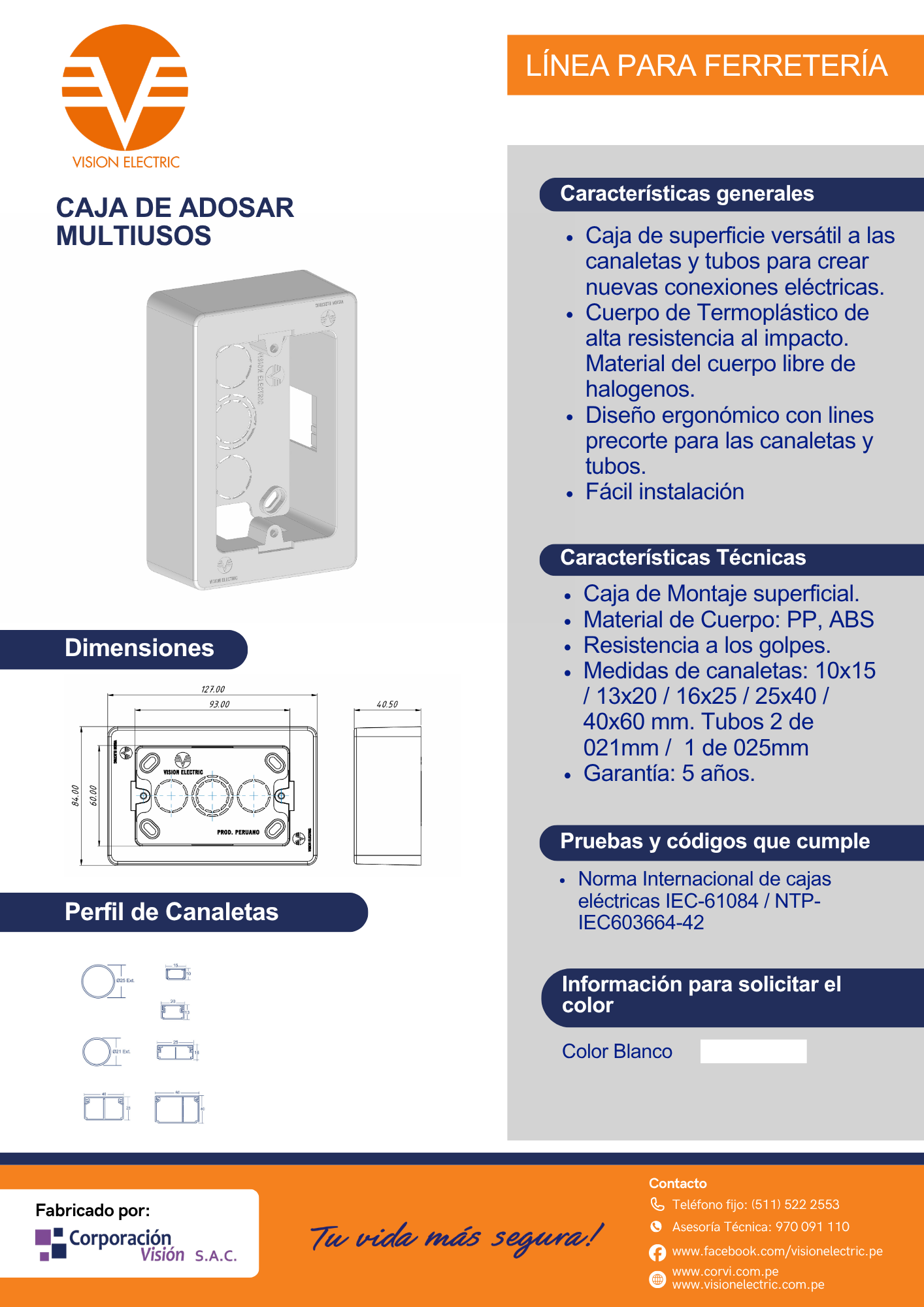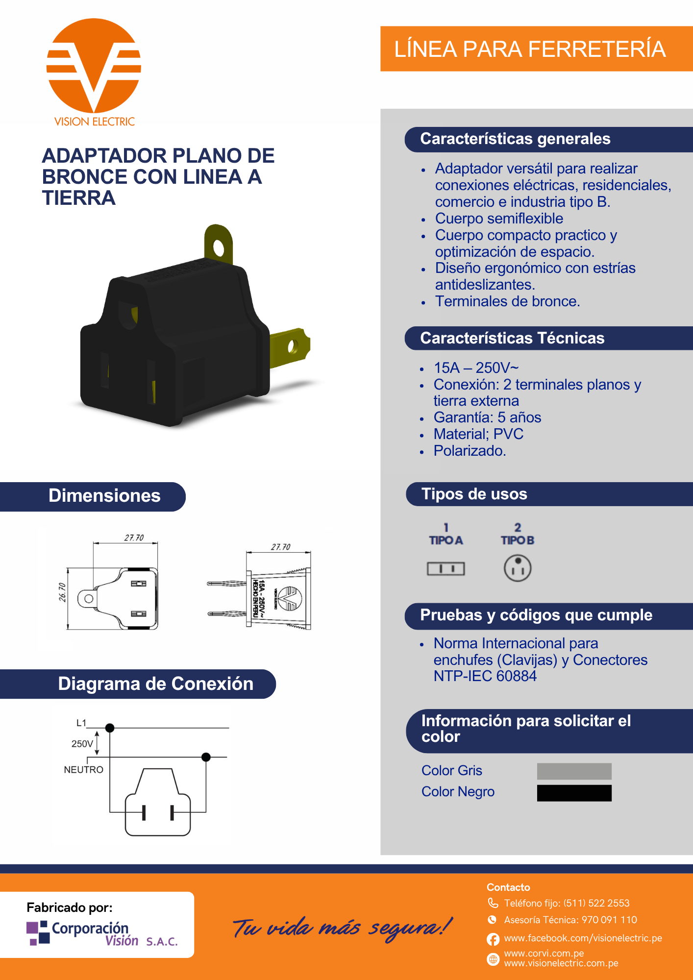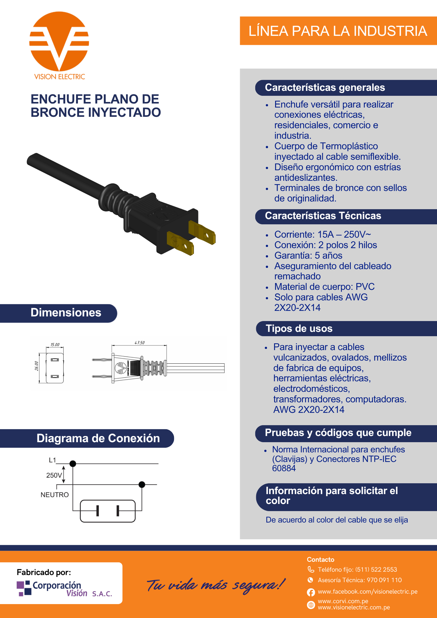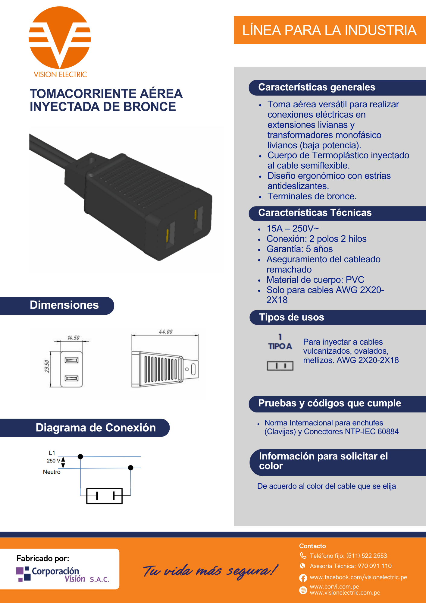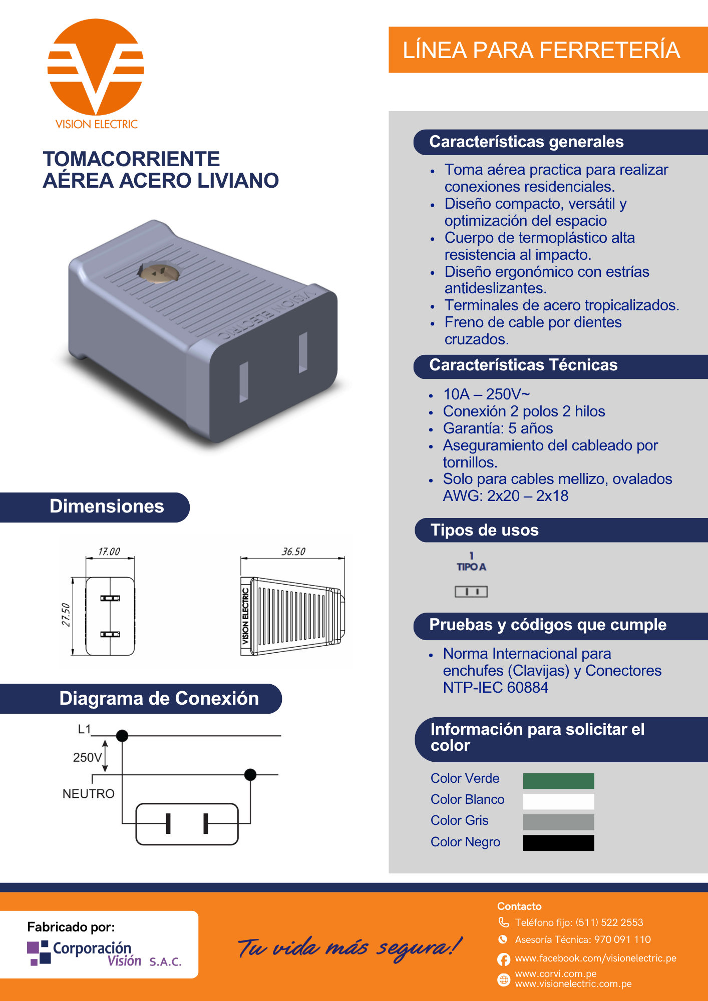 Productos fabricados con material termoplástico libres de metal pesado y halógenos. Además los terminales, tornillos y tuercas de primera calidad certificados según normas técnicas que garantizan su seguridad y su larga vida, preferido y selecto para aplicarlo en el universo de aparatos electrodomésticos semi-Industriales y profesionales.
